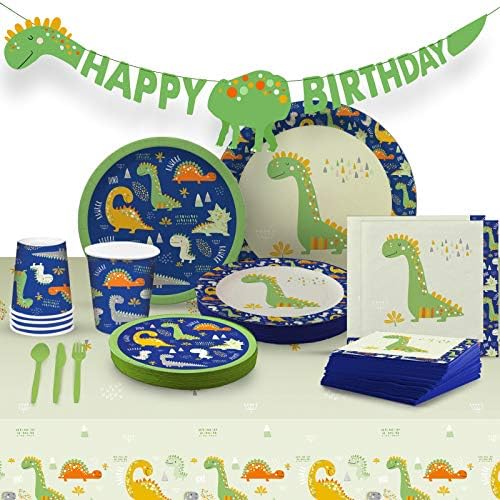 Amazon Com Hapycity 144 Pieces Dinosaur Birthday Party Supplies Set Serves 24 Perfect Dinosaur Party Supplies Packs Including Dinosaur Plates Napkins Cups Forks Spoons Knives Toys Games